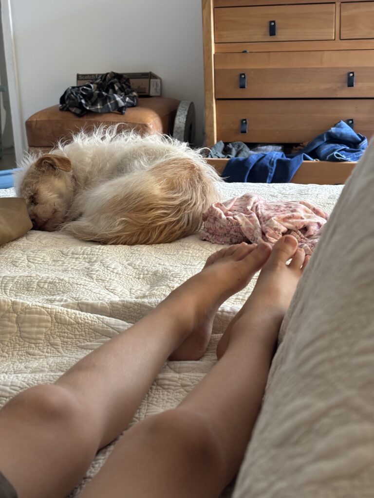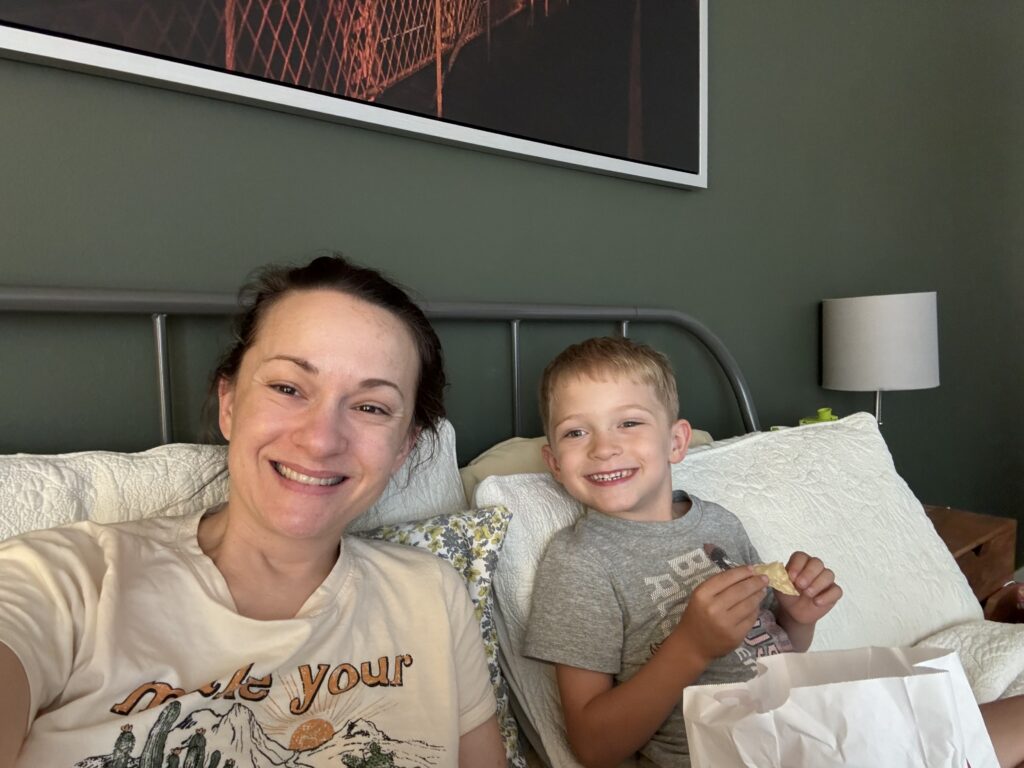 That’s exactly what I did. I can’t remember if I watched a show or a movie, I likely escaped to the world of tiktok, but I finished my tacos and my bottle of wine by 3pm. James came in and asked if he could be with me. Of course I said yes and we sat together watching Paw Patrol and eating corn chips. It was sweet, something I want to remember. James had no idea how much I needed to be pulled back into reality. His sweetness was a shock to my system that had been sitting in dread for the past couple of hours. He came in and brought his light of life with him and reminded me that cancer couldn’t take that moment away from me. His presence reminded me of how wonderful it is to be with the ones you love, no matter how challenging life is. That’s the great thing about having so many kids, there is always someone who is going to step in and remind me of how sweet and dear this life is…even if I have to battle cancer. I took pictures of his sweet and dirty little boy feet and soaked in his profile as he sat there chomping his chips. He brought the magic of life with him as he entered my bed-rotting room and sparked my hope again. I looked at James and said, “I’m going to get through this.” He just smiled and nodded not realizing just how important it was that I said that out loud. His smile and nod were all I needed. I was going to get through this. I had no idea how, but I was.