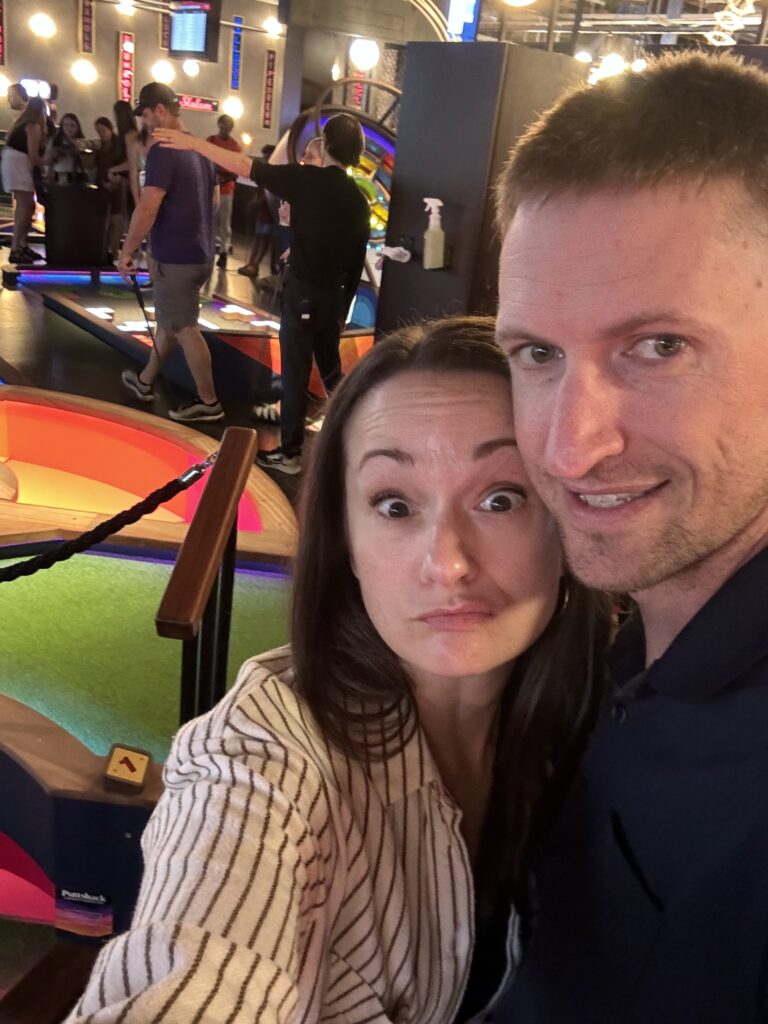 For this particular date I made the unilateral decision that we were going to play putt putt golf. Prior to this date I don’t think we had ever played putt putt together so it was going to be a new experience and I liked that idea. When mortality becomes a very real companion doing new things feels really important. This putt putt place was a blast! There was a huge bar where you could order your ideal drink and then hit the course feeling loose! Chris is good at everything sports related, even when he is under the influence and I’m 50/50 stone cold sober, so of course Chris won. That’s what he does…he wins.