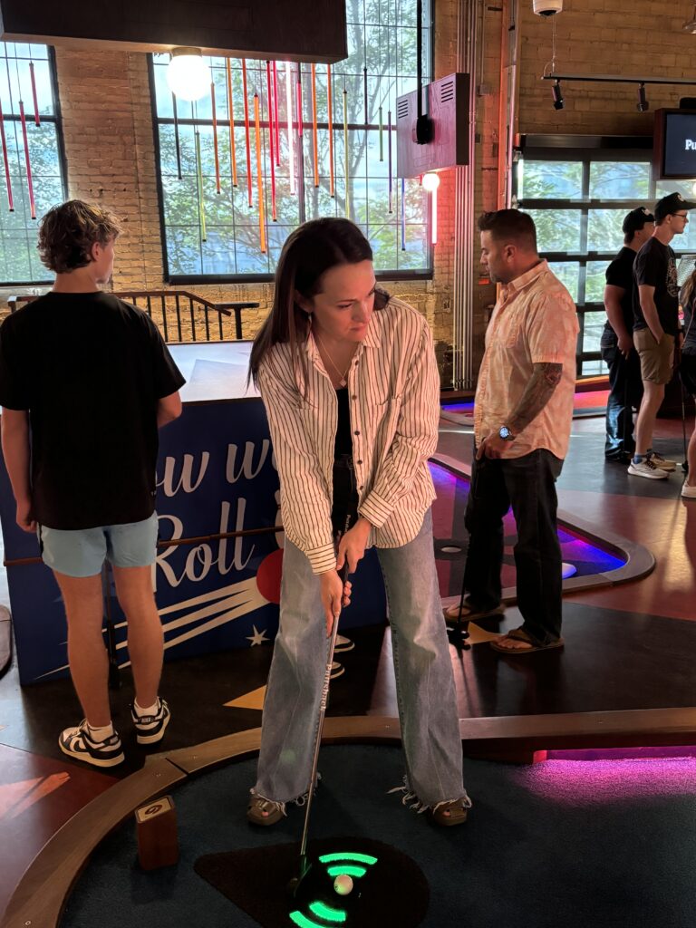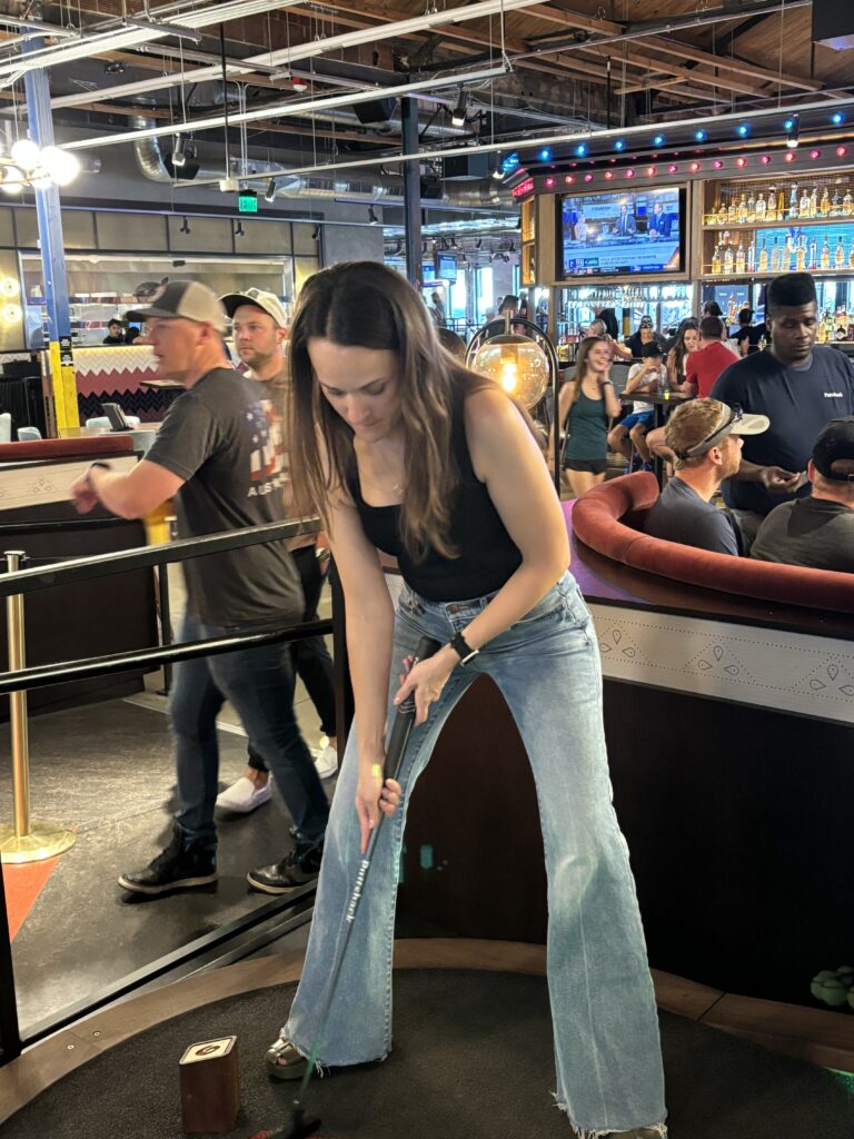I can see the sadness behind my eyes in the pictures we took. That’s okay though, I was sad and that is part of the memory. This was a sad and happy memory and I’m learning to be okay with that. Just because sadness was present doesn’t mean it’s not worth remembering. Past Emilie liked to avoid hard feelings like the deep sadness I was feeling on this day. I’m learning to accept hard feelings and allow them to run their course. In fact, their course might look a little like a putt putt course with strange walls and snares making the process just a little bit longer. Time is showing me that every feeling, good or bad, makes it to the hole. If I let it run its course, I’ll eventually make it to the hole and be able to move on to the next. Regardless of the literal or figurative putt putt course, it’s just a little bit easier to get through it with good company and a yummy drink in hand.