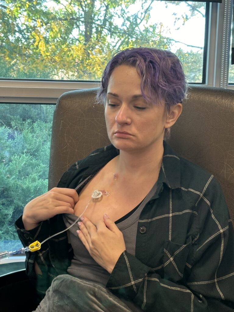 The second infusion was over and I was disconnected but required to stick around for another hour so they could keep an eye on me just in case I had an allergic reaction to the Chemo. That was such a long hour. I was filled with adrenaline because I had just done something really brave. There was a dopamine hit when it was over because I was so proud of myself for doing it! I felt good. It felt sacred because it was sacred. I had just done something holy, I got myself through something scary.