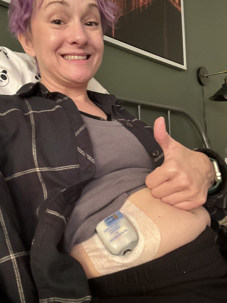 The end of the hour had come and I had one more obstacle before I could go home. I had to have a Neulasta injection box attached to my stomach. This injection box would inject me with a white blood cell stimulator 20 something hours after my chemo. It was either this injection box or I’d have to come back the next day to get the injection. I knew I wouldn’t want to leave my house the next day and the injection box felt like the lesser of the two evils. It was really weird having that thing on my stomach. Here’s a picture of the situation.