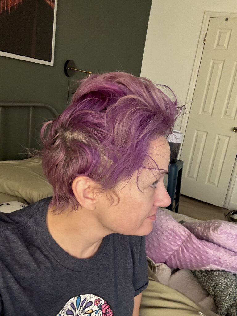 As stated above, the fatigue was crushing and I have never slept so hard. When I closed my eyes I envisioned my body sinking into the bed because the fatigue was pushing me down. My bed head was epic. I wasn’t as good at documenting things during the chemo stage of this fiasco but I did manage to take these pictures of my bed head. This was pretty much what my hair looked like for the 5 days after the infusion.